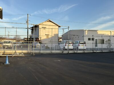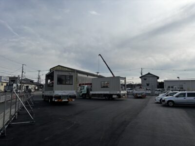 現在、仮事務所が搬入され、内装の整備も着々と進んでおります。